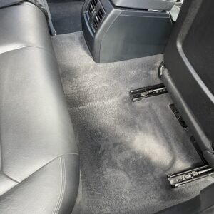 〈施工前〉 後部座席の真ん中あたりの出っ張っているフロアカーペットに、そのまま残ってます
