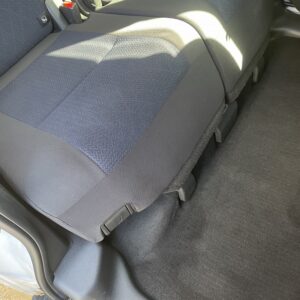 〈施工前〉 後部座席のシート座面の縦面と、足下に白く吐いた痕跡が残ってます。お子さんとは言え嘔吐物は臭います![]()