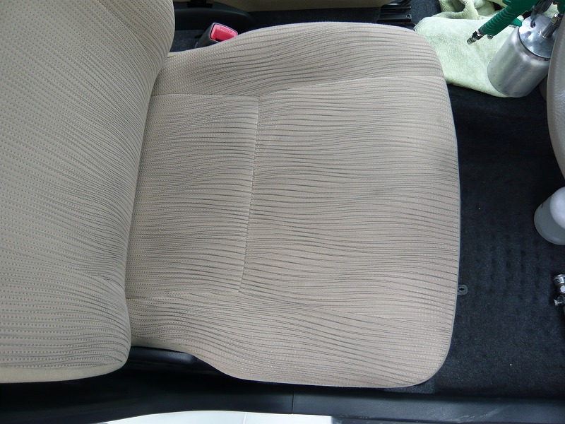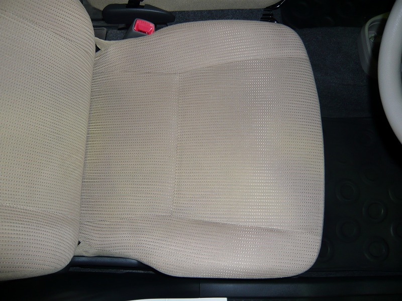 後で詳しく載せますが、最初にクリーニング途中経過のシートをご覧ください。運転席の座面です。
