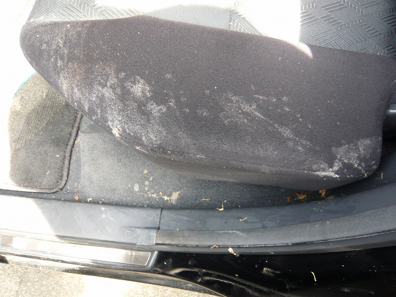 写真では、お客様があるていど拭きとっているので判りずらいのですが、臭いがかなりシートに残ってました。