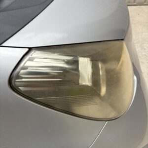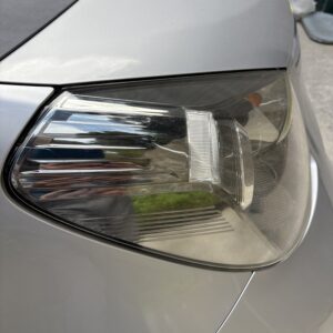 〈施工前〉 ヘッドライトの横からです。黄ばみが酷いので太陽光に反射して中身がよく見えませんね![]()