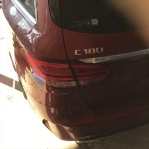 お車はこちら、ベンツ C180 です。 落ち着いた赤で、いいところのお嬢様や若奥様に似合う雰囲気のお車でした